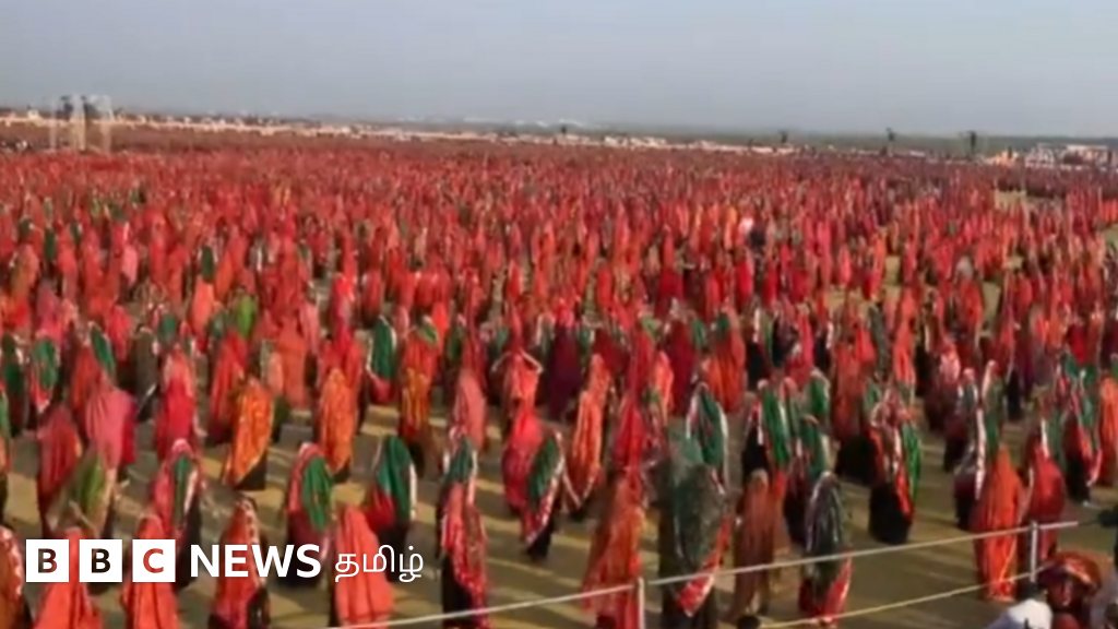 இது 37 ஆயிரம் பெண்கள் ஒரே இடத்தில் ஒன்று கூடிய தருணம். இவ்வளவு அழகான காட்சியை நீங்கள் இதற்கு முன்பு கண்டிருப்பீர்களா என்பது சந்தேகம் தான். இந்த பெண்கள், பாரம்பரிய சிவப்பு நிற உடையில் தங்க நகைகளை அணிந்து ஒரு பெரிய வட்டம் அமைத்து ராஸ் நடனமாடினார்.