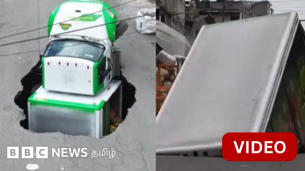 மெக்சிகோவில் குளிர்பானங்களை ஏற்றிச்சென்ற வாகனம் ஒன்று சாலையில் ஏற்பட்ட பள்ளத்தில் விழுந்தது.