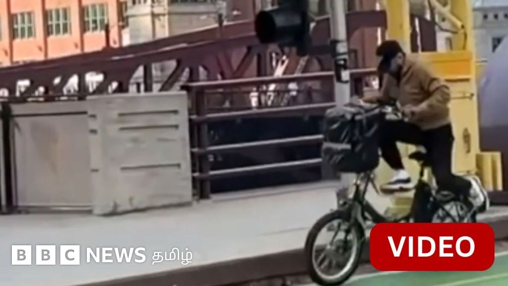 அமெரிக்காவில் ICE அதிகாரிகளிடம் இருந்து நபர் ஒருவர் சைக்கிள் மூலம் தப்பிய காட்சி இது.