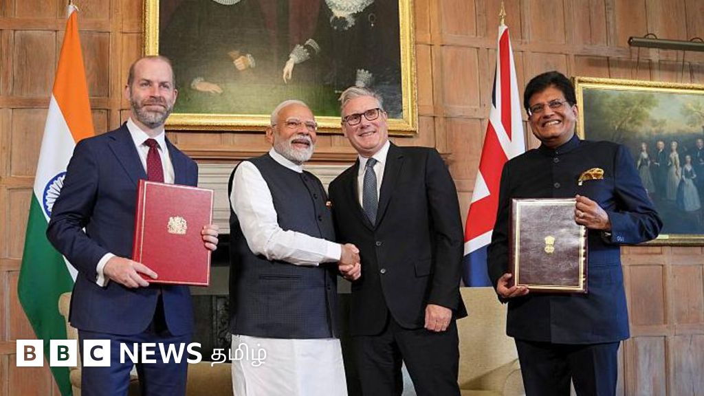 இந்திய பிரதமர் நரேந்திர மோதி, பிரிட்டன் பிரதமர் சர் கியர் ஸ்டாமருடன் ஏற்றுமதியை ஊக்குவிக்கும் தடையில்லா வர்த்தக ஒப்பந்தத்தில் கையெழுத்திட்டுள்ளார்.