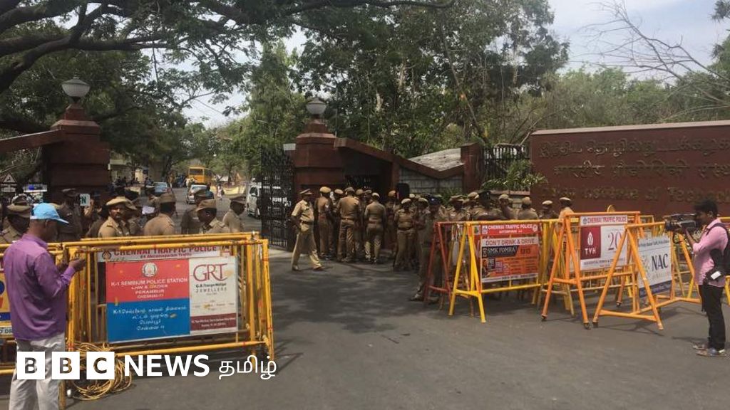 ஐஐடி வளாகத்தைச் சுற்றி கடும் போலீஸ் பாதுகாப்புப் போடப்பட்டுள்ளது. அடையாள அட்டை உள்ளவர்கள் மட்டுமே உள்ள அனுமதிக்கப்படுகின்றனர்.