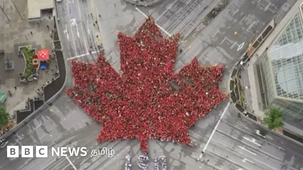 "கனடா 150" கொண்டாட்டங்களை முன்னிட்டு மனிதர்கள் மேப்பிள் இலை வடிவமைப்பதை பருந்து பார்வையில் காணொளியாக உங்களுக்கு வழங்குகின்றோம்.