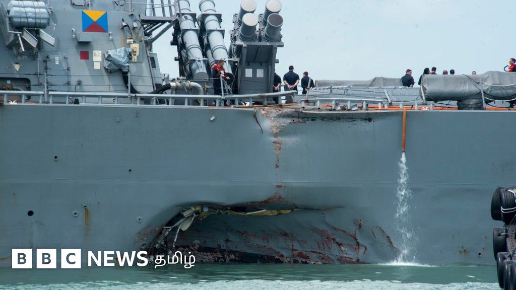 சிங்கப்பூர் அருகே திங்கள்கிழமை நடந்த விபத்தில் யு.எஸ்.எஸ். ஜான் எஸ்.மெக்கெய்ன் என்ற போர்க்கப்பல் எண்ணெய் டேங்கர் ஒன்றுடன் மோதியதில் போர்க்கப்பலின் பக்கவாட்டில் ஓட்டை ஏற்பட்டு உள்ளே தண்ணீர் புகுந்தது.