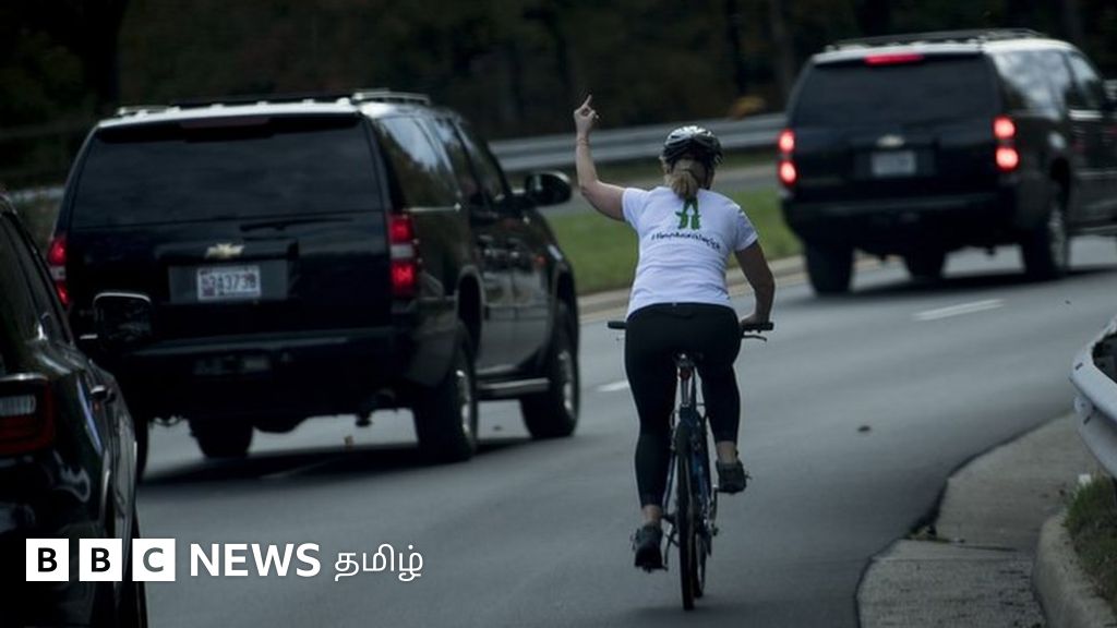 டிரம்ப் வாகனத்தை நோக்கி 'நடு' விரலை உயர்த்திய பெண்ணின் வேலை பறிப்பு
