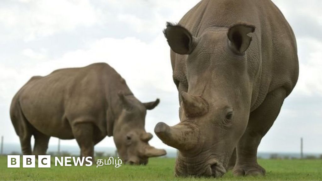 நார்தம் ஒயிட் காண்டாமிருகங்கள் (படத்தில் காண்பது) உலகில் இப்போது இரண்டு மட்டுமே உள்ளன. ''நடைமுறையில்'' அந்த இனம் அழிந்துவிட்ட நிலைக்கு வந்துவிட்டது.