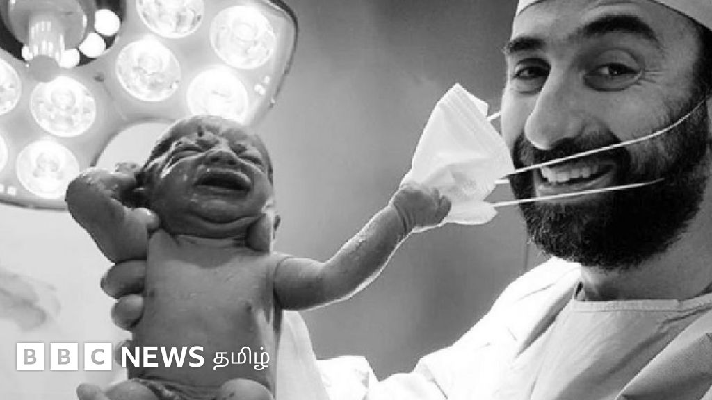 துபையில் பிறந்த குழந்தையை மருத்துவர் தூக்கிப்பிடித்து புகைப்படத்துக்கு காட்சி கொடுத்தபோது, அழும் அந்த சுட்டிக்குழந்தை மருத்துவரின் முக கவசத்தை பிடுங்கும் காட்சி சமூக ஊடகங்களில் வைரலாகி வருகிறது.