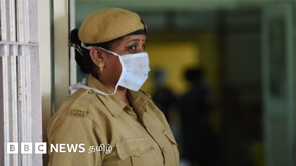 நோய்த் தாக்குதலுக்கு அஞ்சி மூக்கை மூடிக்கொண்டுள்ள பெண் போலீஸ்காரர்