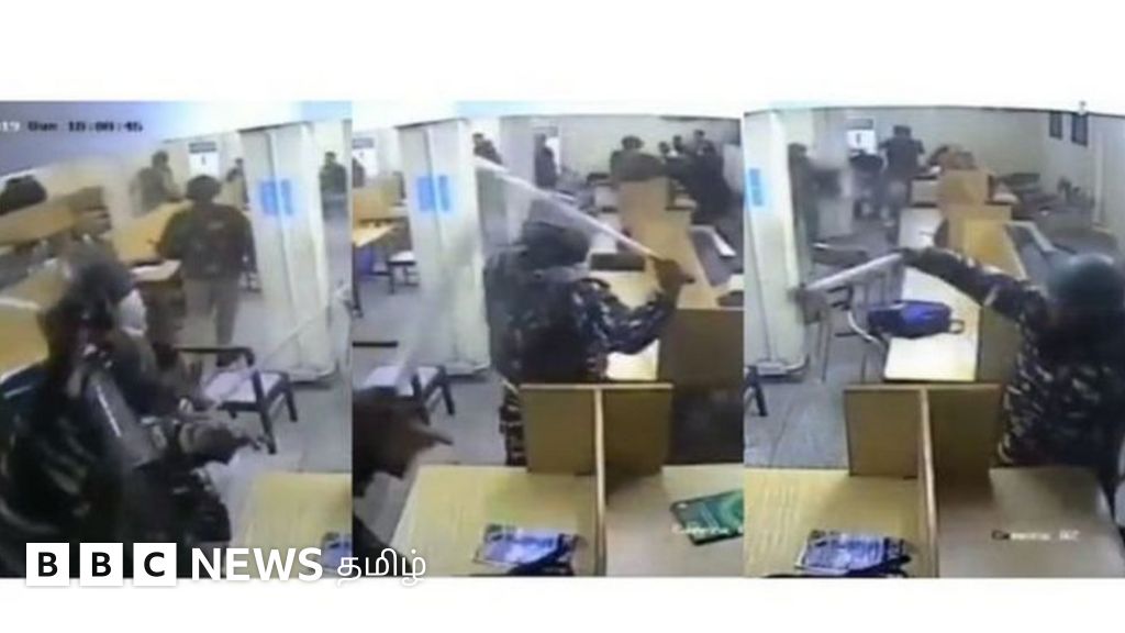 29 விநாடி நேரம் ஓடும் உள்ள அந்த சிசிடிவி காணொளியில் கல்லூரி நூலகத்தில் இருக்கும் மாணவர்கள் மீது போலீஸார் தடியடி நடத்துகின்றனர். அதில் சில மாணவர்கள் நாற்காலிக்கு அடியில் சென்று ஒளிந்துகொள்கின்றனர். சிலர் தங்களை விட்டுவிடுமாறு கைகூப்பி கேட்கின்றனர்.