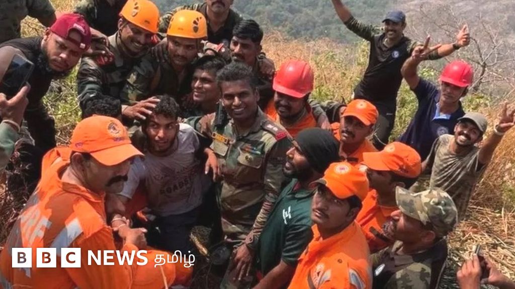 கேரளாவில் 40 மணி நேரத்திற்கும் மேல் மலை இடுக்கில் சிக்கியிருந்த இளைஞர் மீட்பு