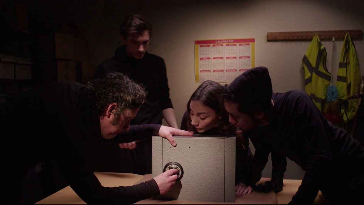 The story begins as the gang bring the safe into their lair and Miguel, the crime boss, reads out the numbers. He gets annoyed when Javier – keen to be in command – attempts to read them too.