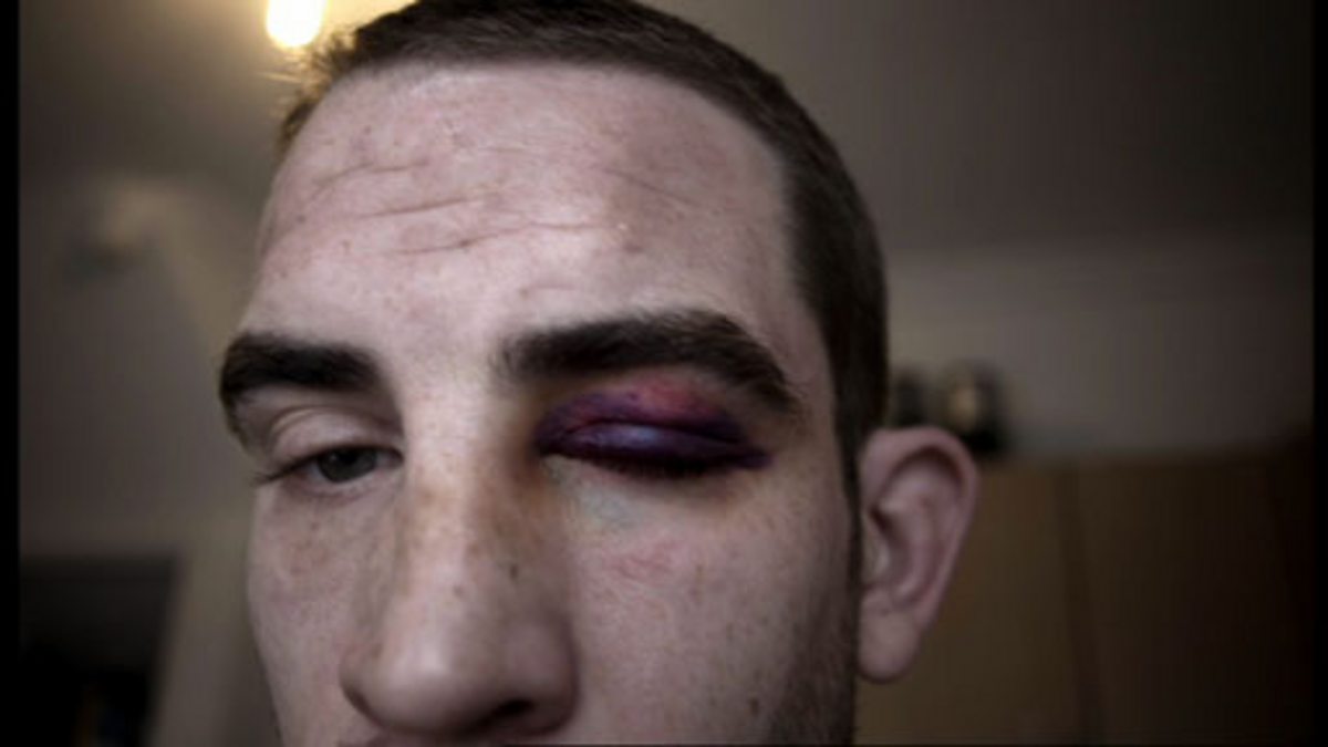 Five hours after the fight, the effects of the punch are beginning to show on Johnny's face. His eye is beginning to swell. Fluid is flowing into the tissue around the eye. It's coming from tiny holes in the walls of the blood vessel. It is a form of defence. The force of the flow stops any infection in the wound from traveling into the bloodstream, trapping it in the tissue instead. The results of this inflammation are dramatic. Johnny's eye has now turned a striking shade of purple. The colour is the product of decaying blood cells trapped outside the circulatory system, where they can't survive.
