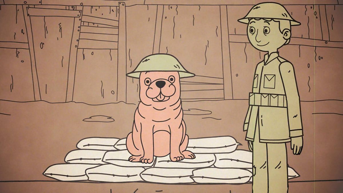 Narrator: I'm proud of the job my family did on the battlefield. And maybe, when you next see a pigeon fly past, or a horse galloping in a field, or when you throw me one of those great crunchy sticks, you'll remember all the animals that helped in the war.