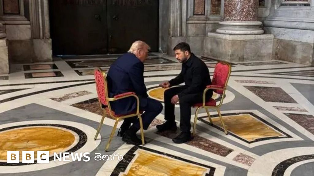 పోప్ ఫ్రాన్సిస్ అంత్యక్రియల ప్రారంభానికి ముందు, ట్రంప్, జెలియెన్స్కీ ఎదురెదురుగా కూర్చుని మాట్లాడుకుంటున్న ఫోటోలు విడుదలయ్యాయి.