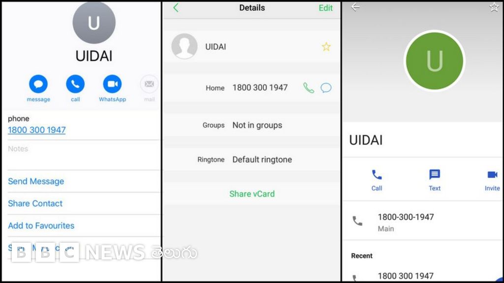 - యుఐడీఏఐ నంబర్ కేవలం ఆండ్రాయిడ్ ఫోన్లలోనే సేవ్ అవుతోందని కొందరు చెబుతున్నారు. కానీ, ఐఫోన్లలోనూ ఇది కనిపిస్తోంది.
