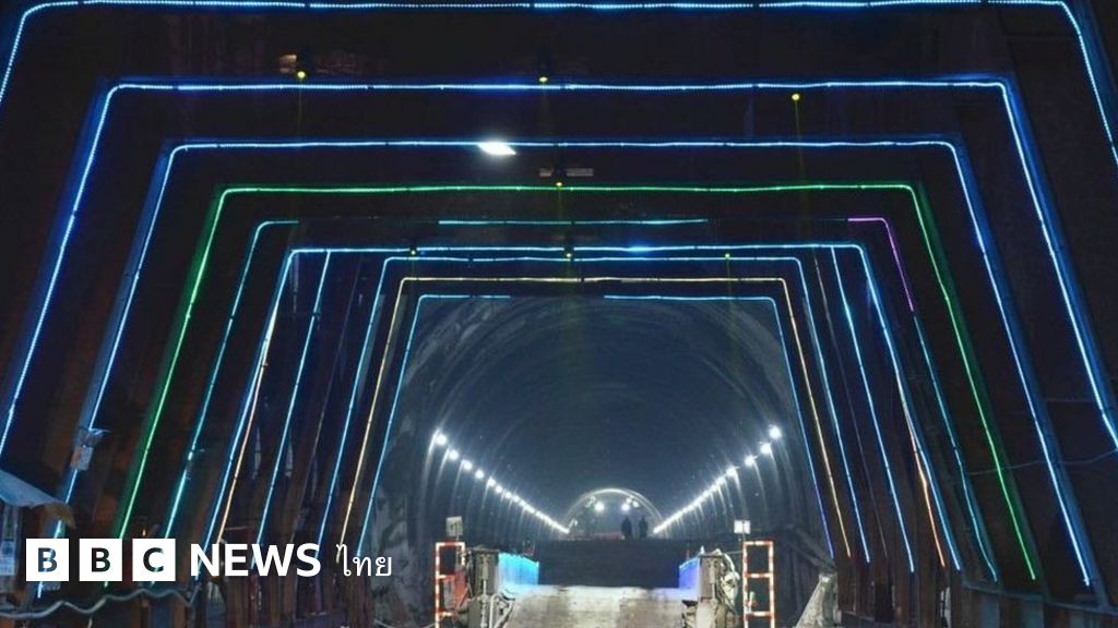 คำบรรยายภาพ, ภาพภายในอุโมงค์ความยาว 17,441 เมตร ในมณฑลยูนนาน ที่เป็นส่วนหนึ่งของโครงการรถไฟจีน-ลาว ภาพถ่ายเมื่อ 13 มี.ค. 2020