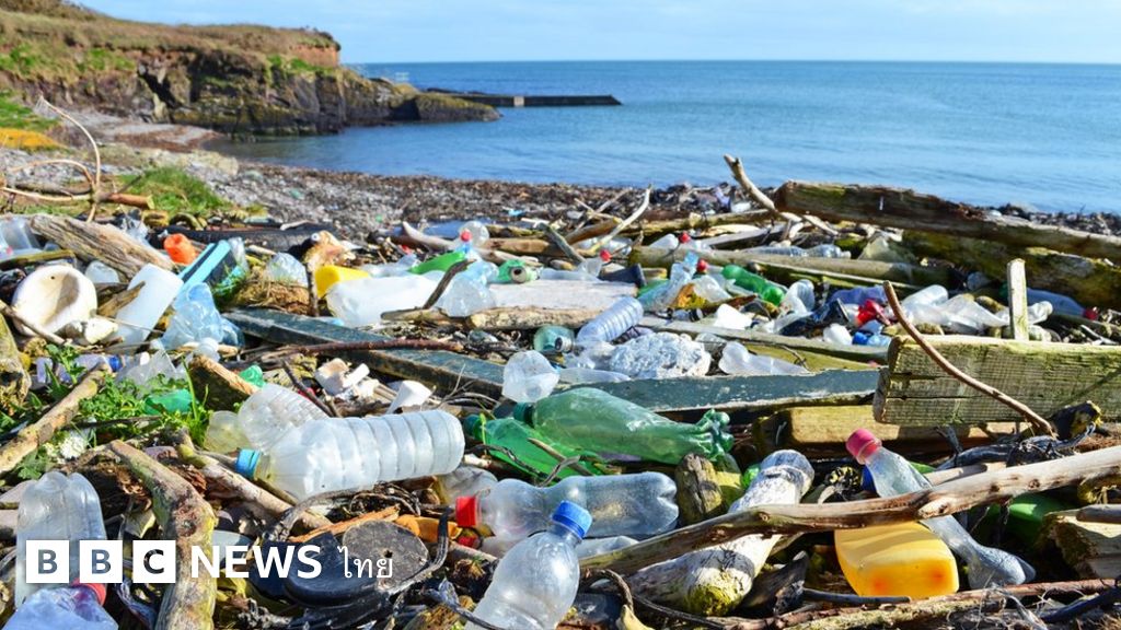 คำบรรยายภาพ, มีงานวิจัยของนักวิจัยชาวสหรัฐฯ ระบุว่า ปริมาณขยะพลาสติกที่เล็ดลอดออกสู่มหาสมุทรว่า มีถึง 8 ล้านตันต่อปี