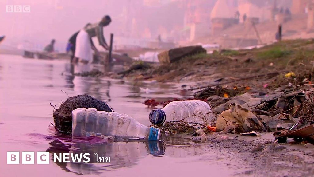 แม่น้ำคงคาที่เต็มไปด้วยขยะพลาสติก