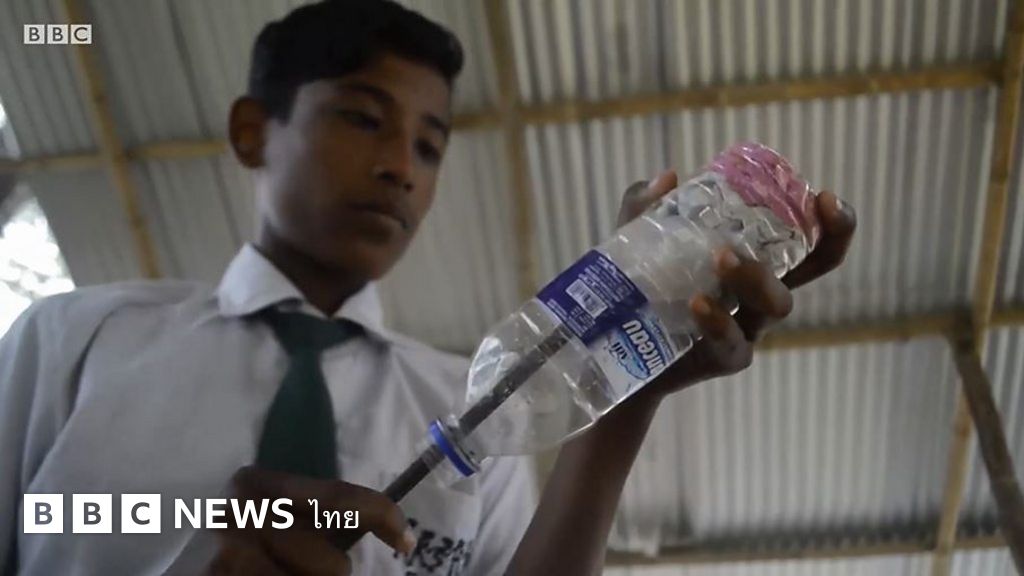 นักเรียนสร้าง 'อิฐอีโค' ขึ้น ด้วยการนำเศษขยะยัดเข้าไปในขวดพลาสติก