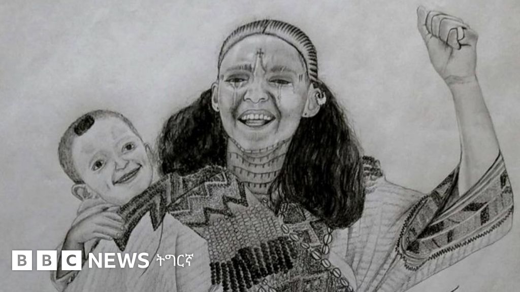 እታ ስእሊ፡ ኣብ ዝባና ቈልዓ ዝሓዘለት'ሞ፡ ኣብ መንጐ እቲ ብዕስለ ኣንበጣ ሃሰያ ዝወረዶ ሕርሻኣ ኰይና ጓሂኣን ድኻማን ኣብ ገጻ ዝንበብ ዝነበረት ኣደ እያ።