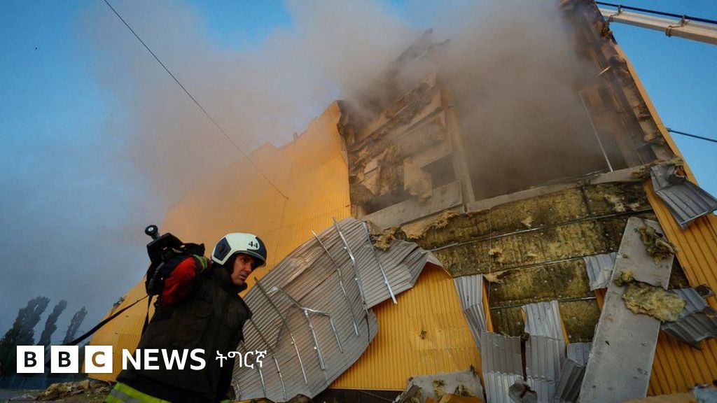 ፋብሪካ ትምባኾ ሓዊሱ ገለ ብዝወድቕ ዝነበረ ፍርስራስ ድሮናት ኣብ ልዕሊ ዝተሃረሙ ህንጻታት ሓዊ ተላዒሉ’ዩ።