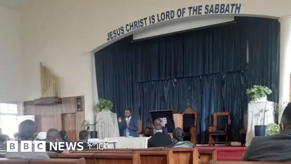 መራኸብቲ ሓፋሽ ደቡብ ኣፍሪቃ፡ ኣገልጋሊ እታ ቤተ-ክርስትያን ኣብ መድረኽ ኰይኑ እናሰበኸ እንከሎ፡ ሽድሽተ ዕጡቓት ናብታ ቤተ-ክርስትያን ከም ዝኣተዉ ፀብፂበን።