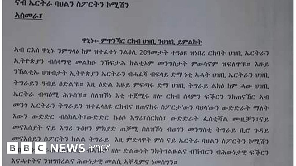 ቤት ጽሕፈት (ቢሮ) ስፓርትን መንእሰያትን ክልል ትግራይ ናብ ኮሚሽን ባህልን ስፓርን ኤርትራ ባህላዊን ስፓርታውን ምትእስሳር ክህሉ ዝጽዉዕ ደብዳቤ ጺሒፉ።