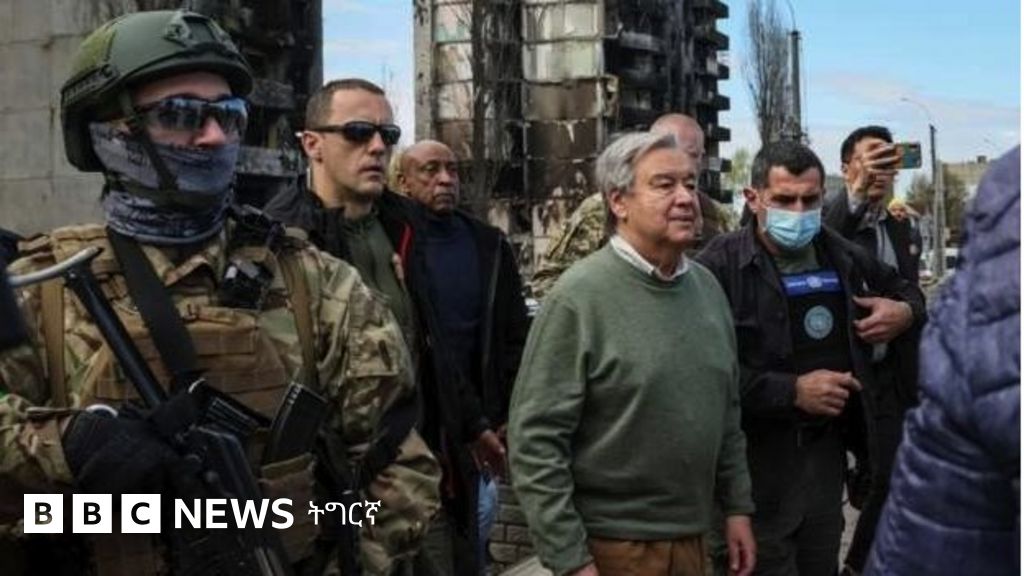 ኣብ ዩክረይን ምብጻሕ ዘካይድ ዘሎ ዋና ጸሓፊ ሕቡራት ሃገራት፡ ኣንቶንዩ ጉተረዝ ናብቲ ኣብ ትሕቲ ሓይልታት ሩስያ ኣትዩ ዝነበረን ብዙሓት ሲቪላውያን ተቐቲሎም ዝተረኽብሉን ቡቻ ዝተባህለ ቦታ ብምኻድ ንዝወረደ ዕንወት ብኣካል ተዓዚቡ።