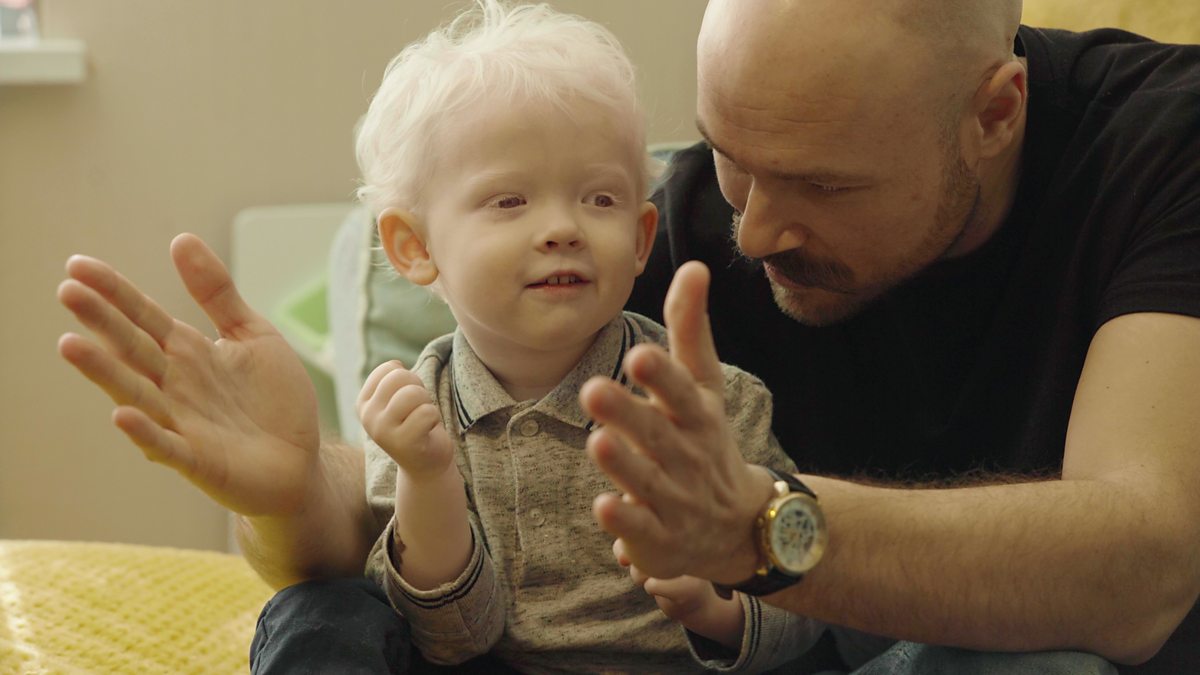 Hi, I'm Torrian and I'm Layla, and we're Milo's parents. Milo is two years old and has oculocutaneous albinism. Milo's albinism affects his hair, skin and eyes, and he is registered as visually impaired.