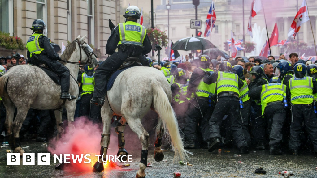 Londra'da aşırı sağcı siyasi eylemci Tommy Robinson'ın organize ettiği protestoya 150 bin dolayında kişi katılırken, çıkan olaylarda 26 polis yaralandı.
