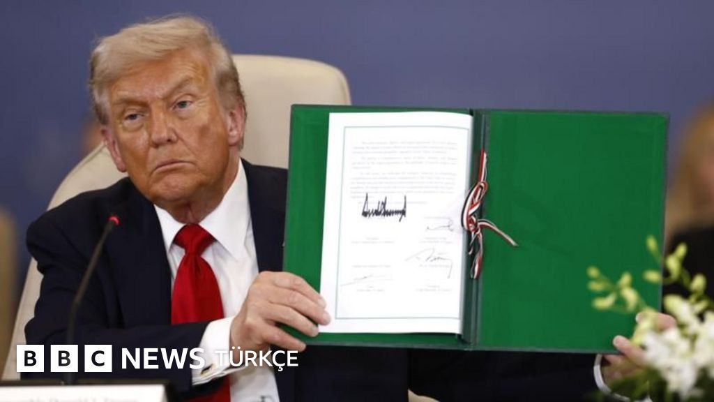 Trump, kendisine yeşil dosyada iletilen ateşkese dair niyet beyanını imzalarken "Bu noktaya gelmesi 3.000 yıl sürdü, inanabiliyor musunuz?" dedi ve ekledi: