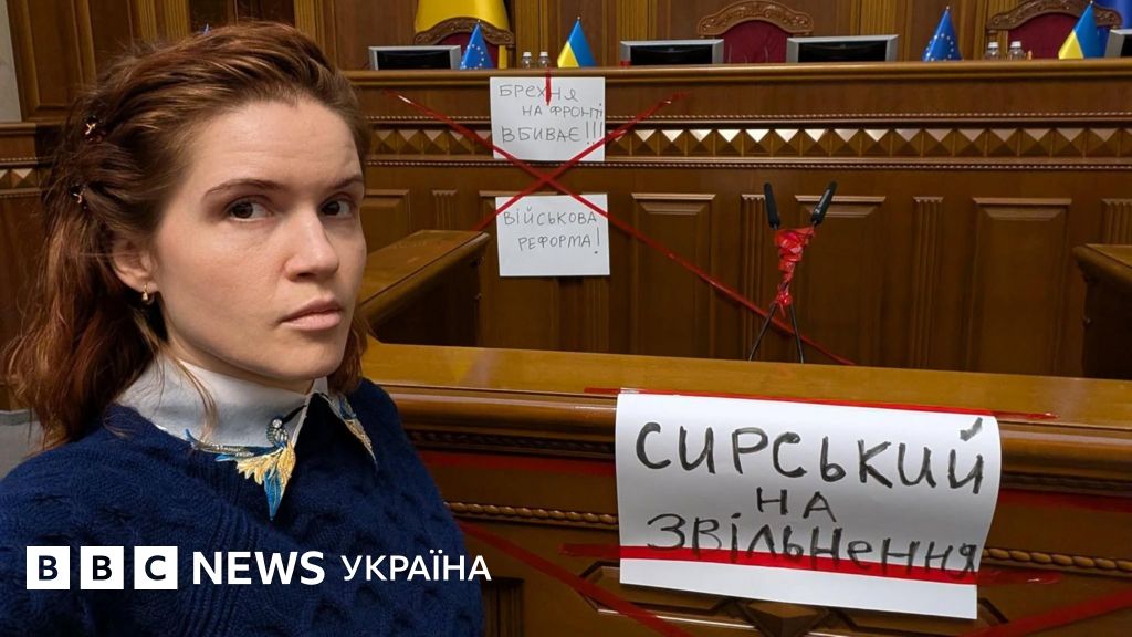 "Ні, немає, – запевнила Безугла, але, пройшовши двері, навздогін додала: Звичайно є!” – та рішуче попрямувала одразу ж до трибуни, яку вже за мить почала обклеювати своїми плакатами із написами "Сирський на звільнення", "Брехня на фронті вбиває!", "Військова реформа!", "Терміни служби та/або ротація".
