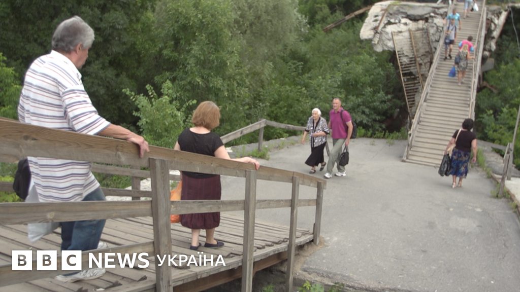 "Хоч би цей міст зробили рівним. А то там колеса на візках ламаються. Ідеш по тих паличках - хитаєшся", - каже 67-річна Любов, чий будинок у Станиці Луганській потрапив у зону розведення військ.