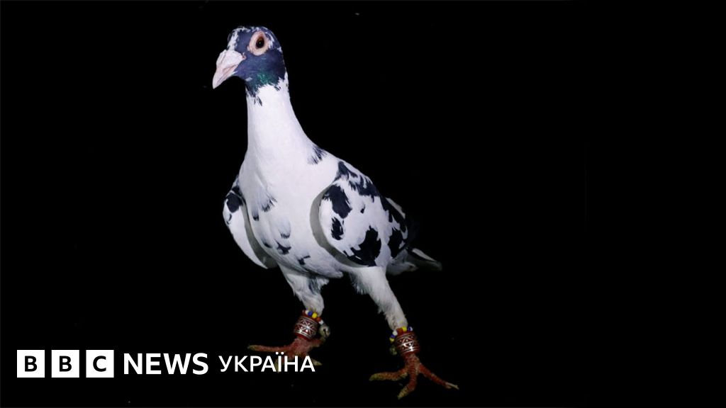 Довкола клітки, в якій повно голубів, стоять стільці. Плакат на стіні рекламує вже минулий "Національний конкурс на найкрасивішого голуба".