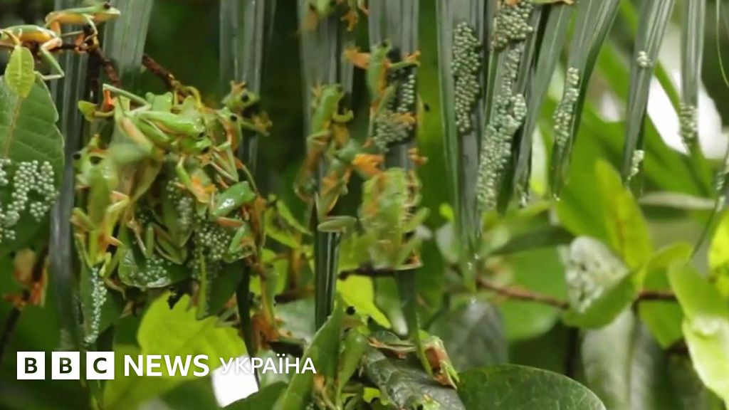 Ці деревні жаби у Коста-Риці збираються разом над водою і відкладають яйця.