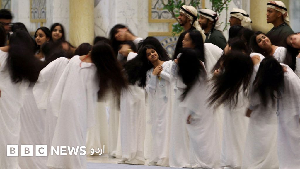 العيالہ: متحدہ عرب امارات میں ٹرمپ کی آمد پر بال لہراتی لڑکیوں کا روایتی عرب رقص تنقید کی زد میں کیوں؟