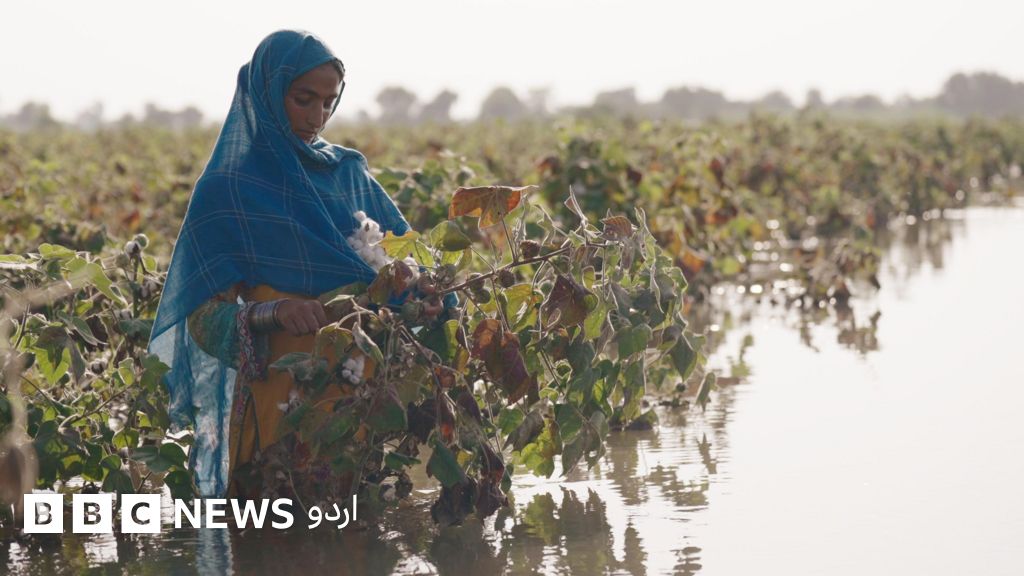 اقبال بی بی لکڑی کے ٹکڑوں اور پلاسٹک کے ڈبوں سے بنی ایک عارضی کشتی سے اُترتی ہیں اور پھر پانی میں سینے تک ڈوب جاتی ہیں۔ انھوں نے اپنا دوپٹہ پانی کی سطح سے اوپر اٹھایا ہوا ہے تاکہ اسے گیلا ہونے سے بچا سکیں۔ وہ احتیاط سے چلتی ہوئی کپاس کے ایک کھیت تک جاتی ہیں جہاں وہ بچی کچی کپاس کے آخری سفید پھول توڑنے کی کوشش کرتی ہیں۔