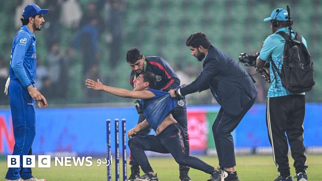 لاہور کے قذافی سٹیڈیم میں افغانستان اور انگلینڈ کے درمیان چیمپئنز ٹرافی میچ کے اختتام پر ایک تماشائی گراؤنڈ میں گھس آیا جسے سکیورٹی اہلکار حراست میں لے کر وہاں سے لے گئے۔