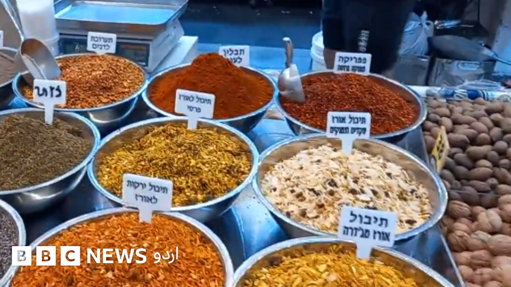 اس ویڈیو میں دیکھا جا سکتا ہے کہ ایک سٹال پر مختلف میوہ جات، مسالے اور کھجوریں نمائش کے لیے رکھی گئی ہیں جن پر عبرانی میں عبارت اور قیمتیں درج ہیں۔