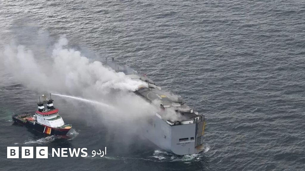 کوسٹ گارڈ کی جانب سے شیئر کی جانے والی تصاویر میں پاناما کے جھنڈے والی فریمینٹل ہائی وے دھوئیں میں ڈوبی ہوئی دکھائی دے رہی ہے اور شمالی بحیرہ شمالی کے ایک علاقے میں آگ کے شعلے ڈیکپر پھیل رہے ہیں۔
