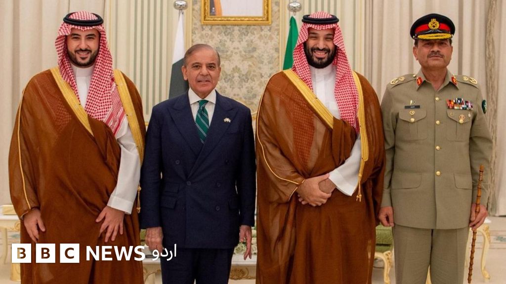 دارالحکومت ریاض کے قصر یمامہ میں محمد بن سلمان اور شہباز شریف کی ملاقات کے بعد جاری ہونے والے اعلامیے میں کہا گیا ہے پاکستان اور سعودی عرب کے درمیان گذشتہ آٹھ دہائیوں پر مشتمل دفاعی شراکت داری، سٹریٹیجک مفادات کے تناظر میں دونوں ملکوں نے ’باہمی دفاع کے سٹریٹجک معاہدے‘ پر دستخط کیے ہیں۔