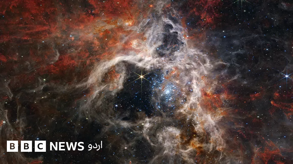 یہ اس سال جیمز ویب کی لی گئی سب سے دلچسپ تصاویر میں سے ایک تھی۔ ڈبلیو آر درحقیقت وولف رائیٹ کا مخفف ہے جو اپنی زندگی کے خاتمے کے قریب پہنچ چکے ستاروں کی قسم ہوتی ہے۔ وولف رائیٹ ستارے گیسز خلا میں خارج کرتے ہیں اور اس کے قریب ایک ستارہ جو تصویر میں موجود نہیں ہے، وہ ان ہواؤں کو جوڑ کر دھول بنا رہا ہے۔ آپ جو دھول کے خول باہر نکلتے ہوئے دیکھ رہے ہیں وہ 100 کھرب کلومیٹر تک باہر نکلے ہوئے ہیں جو ہماری زمین اور سورج کے درمیان فاصلے سے 70 ہزار گنا زیادہ ہے۔