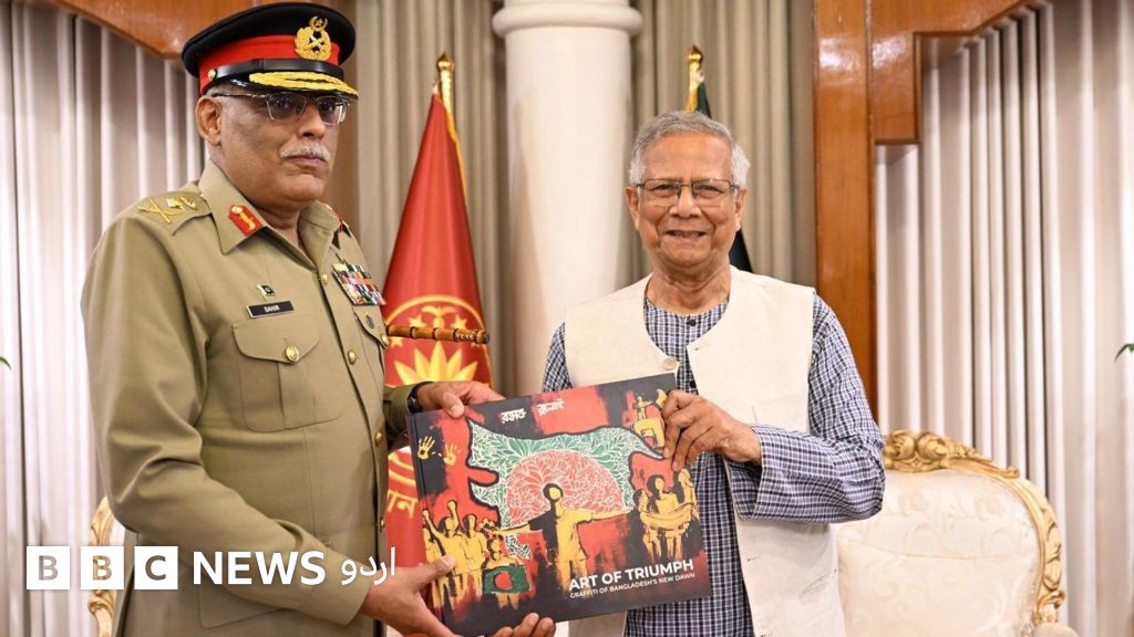 اس کتاب سے متعلق بنگلہ دیش کی عبوری حکومت کی جانب سے بتایا گیا ہے کہ ’ڈاکٹر محمد یونس نے پاکستانی جنرل کو ’دی آرٹ آف ٹرایمف‘ کے عنوان سے ایک کتاب تحفے میں دی، جس میں (بنگلہ دیش میں) جولائی 2024 کی عوامی بغاوت کے دوران ملک بھر کی دیواروں پر طلبا کی جانب سے بنائے گئے رنگ برنگے اور متنوع گرافٹی فن پارے شامل ہیں۔‘