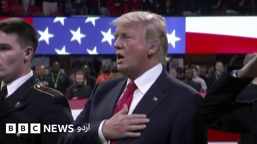 امریکہ کے صدر ڈونلڈ ٹرمپ ایک فٹ بال میچ کے دوران قومی ترانہ بجائے جانے کے موقع پر ہونٹ ہلاتے رہے لیکن کہیں کہیں وہ خاموش رہے