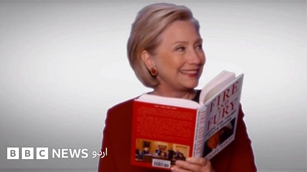 اس ویڈیو میں سابق امریکی صدارتی امیدوار ہلری کلنٹن کے ساتھ ساتھ شیئر اور سنوپ ڈوگ سمیت متعدد مشہور موسیقاروں کو حال ہی میں شائع ہونے والی مائیکل ولف کی کتاب ’فائر اینڈ فیوری‘ کے حصے پڑھتے ہوئے دیکھے جا سکتا ہے۔