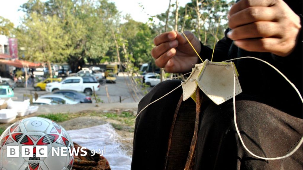 فٹ پاتھ پر بیٹھ کر فٹ بال بنانے والی خاتون کی کہانی