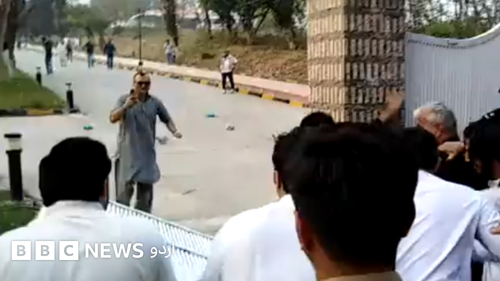 سندھ ہاؤس سے سامنے آنے والی ویڈیوز میں دیکھا جا سکتا ہے کہ تین سے چار پولیس اہلکاروں نے ابتدائی طور پر گیٹ کو لاتیں مارنے والے کچھ افراد کو وہاں سے ہٹانے کی کوشش کی تاہم اس کے بعد کے مناظر میں مشتعل افراد کی بڑی تعداد نے آگے بڑھ کر دروازے کو توڑا۔