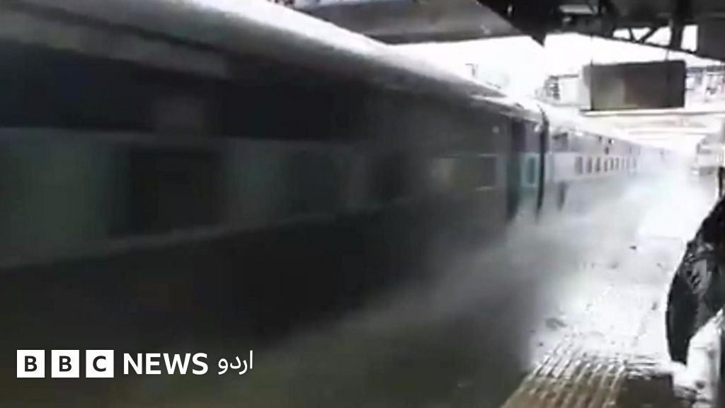 انڈیا کے شہر ممبئی میں حالیہ بارشوں کے بعد ناصرف سڑکیں زیرآب آگئیں بلکہ ریل کی پٹریوں پر بھی پانی جمع ہوگیا۔ ایک ریلوے سٹیشن سے گزرنے والی اس ٹرین کی ویڈیو وائرل ہوگئی ہے جس میں ٹرین نے پلیٹ فارم پر کھڑے افراد کو نہلا دیا ہے۔