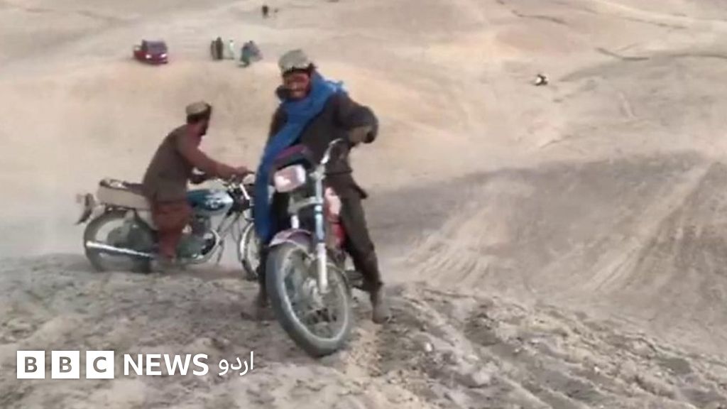 افغانستان کے ریتلے علاقوں میں یہ موٹر سائیکل سوار ریت کے پہاڑوں پر چڑھتے ہیں۔