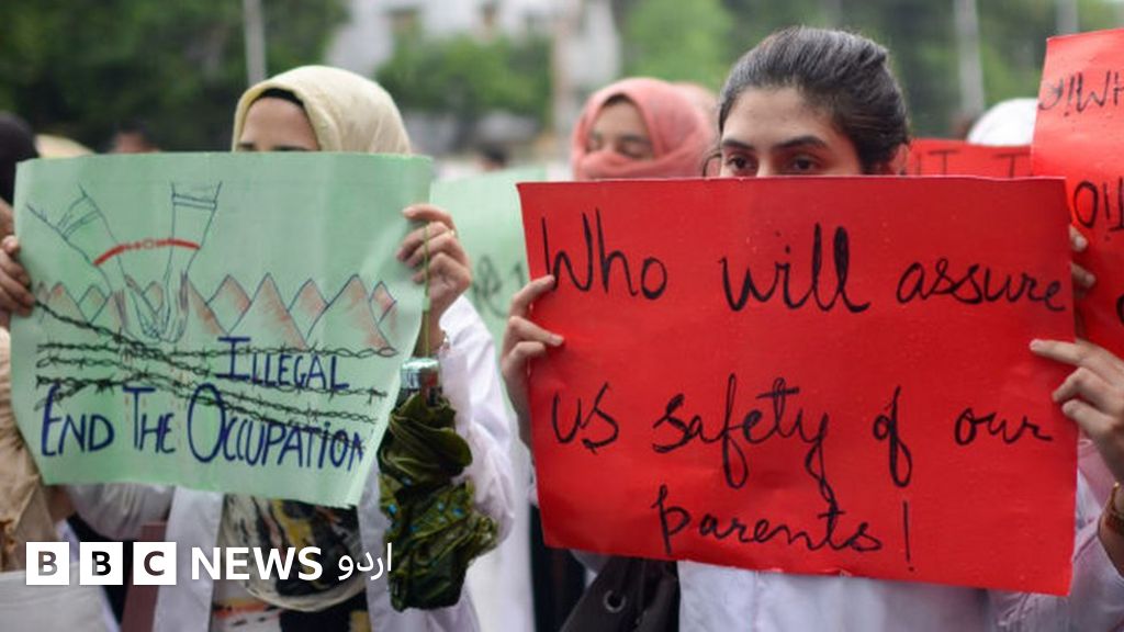 انڈیا کے زیر انتظام کشمیر کے شہر جموں میں ڈوگرا برادری نے پاکستان کے خلاف ایک ریلی نکالی جس میں کشمیر، جموں اور لداخ کی نئی حیثیت کے حوالے بینر بھی آویزاں تھے۔