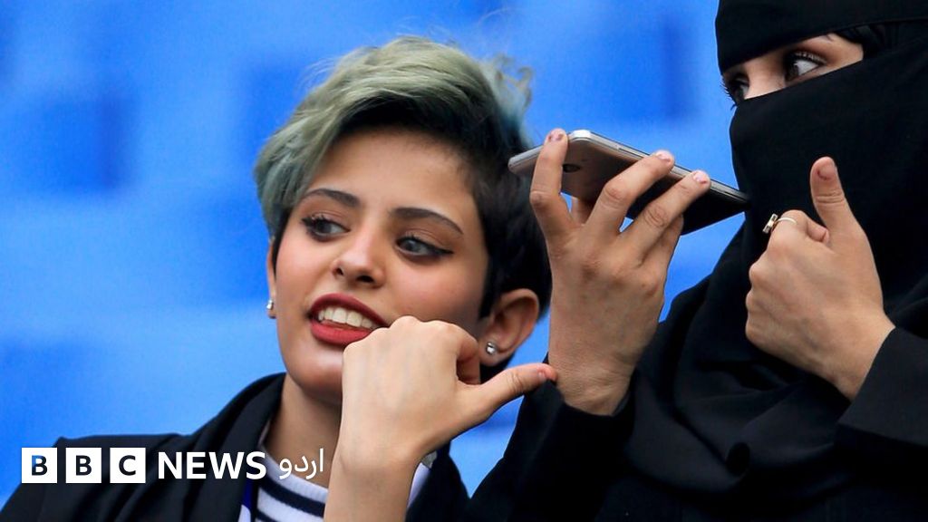 پہلے تو سٹیڈیم میں ایک بھی عورت کا سیاہ عبایا دکھائی نہ دیتا اور ہر طرف صرف سعودی مردوں کے سفید اور لال شماغ اور اجلے سفید چوغے ہی نظر آتے تھے۔
